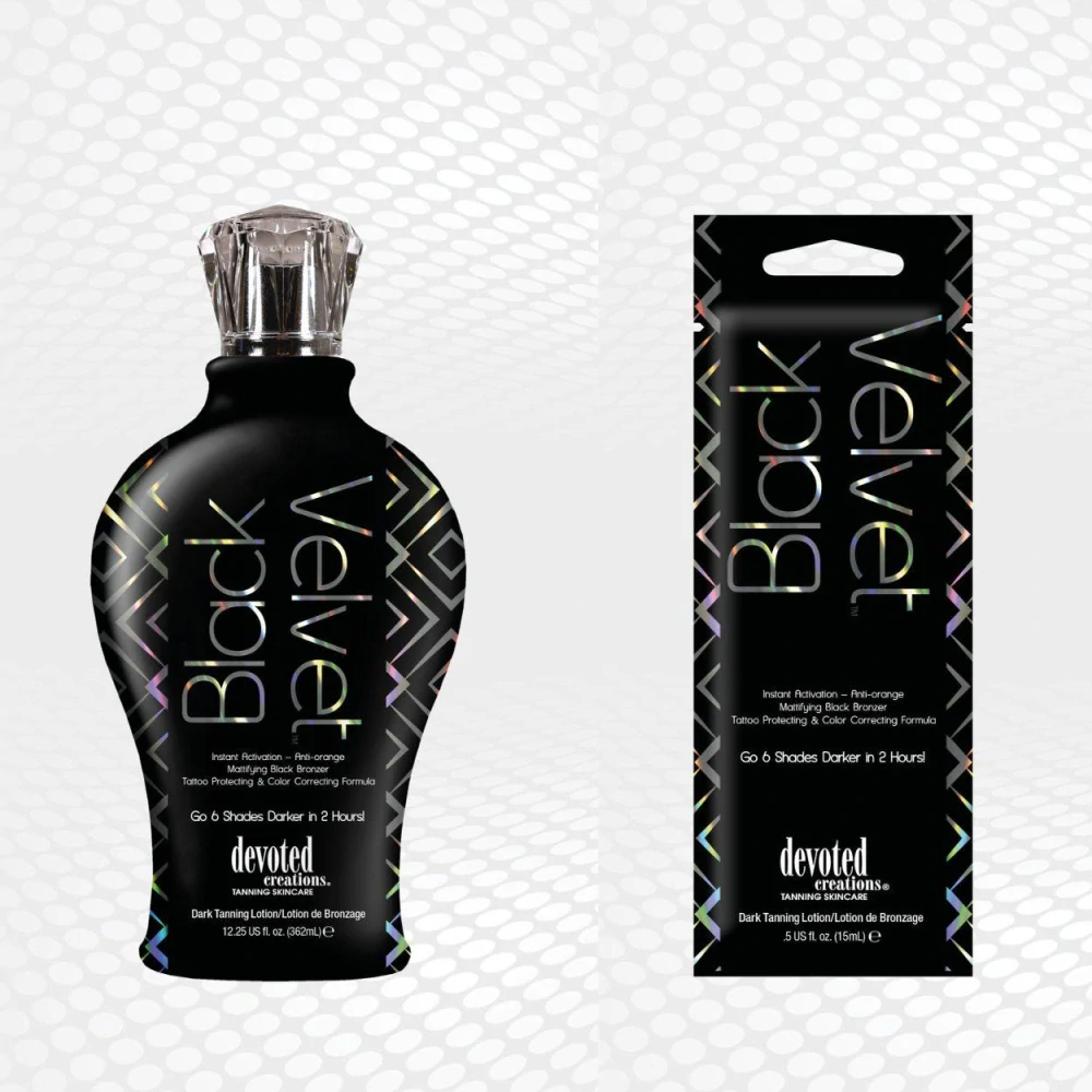 Toto revolučné zloženie krému obsahuje okamžité aktivátory tmavého opálenia, ktoré vám umožnia vidieť farbu oveľa rýchlejšie a zároveň vytvoriť hlboký, dlhotrvajúci bronzový výsledok už za 2 hodiny! Tento zamatovo jemný čierny bronzer, obohatený o výťažky z čierneho uhlia a modrého tansy, detoxikuje, upraví farbu a chráni pokožku pred vznikom oranžových odtieňov. Ochrana proti tetovaniu a vyblednutiu farby umožňujú, aby vaše výsledky opaľovania vydržali čo najdlhšie tým, že udržujú pokožku hydratovanú a vytvára bariéru proti vlhkosti na ochranu proti vyblednutiu farby. Ak to, čo hľadáte je super jemná pokožka a vynikajúce tmavé výsledky, potom sľubujeme zamat… Black Velvet™!