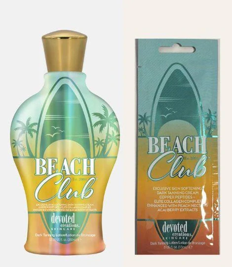 Vďaka elegantnej zmesi medených peptidov, aktivátorov tmavého opálenia a elitnej zmesi Collagen Banking bude vaša pokožka jemnejšia a hladšia, zatiaľ čo výťažky z broskýň a bobúľ acai pôsobia svojimi kúzlami, vďaka ktorým budete vyzerať žiarivo a sviežo. Či už len tak leňošíte pri bazéne alebo na pláži, Beach Club™ je vašou vstupenkou do slnkom pobozkaného vzhľadu, ktorý je tak exkluzívny, ako len môže byť. Takže, oddýchnite si, uvoľnite sa a nechajte túto prestížnu zmes urobiť zvyšok – vitajte v Devoted Creations Beach Club™